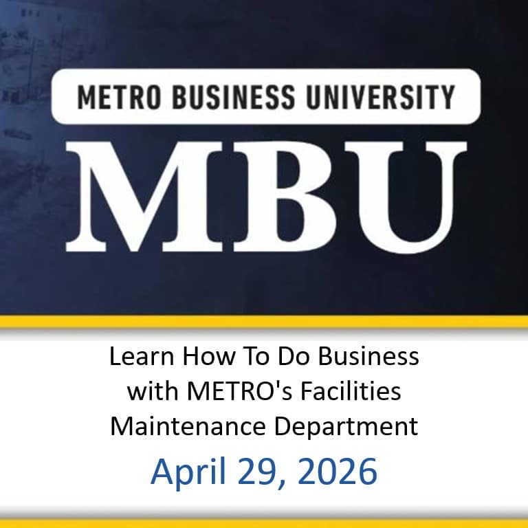 Join METRO’s Facilities Maintenance supervisors to learn about the department’s responsibilities and how to do business with METRO. This session will provide valuable insights on opportunities and requirements for partnering with METRO’s Facilities Maintenance Department.