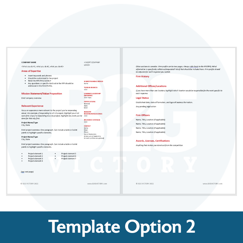 Put your best foot forward when submitting a subcontractor package or proposal with our Firm Profile Templates. These templates are fully customizable with your branding imagery and colors. Select an option and click “Add to Cart” to download this file.
